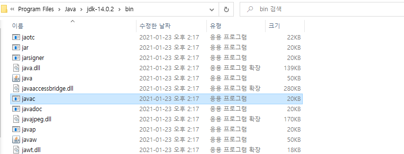 자바 컴파일러는 자바를 설치할 때 javac.exe로 같이 설치된다.