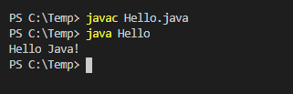 2) 콘솔화면에서 javac '파일이름명.java'를 작성 후 엔터를 누르면 컴파일이 된다. 바이트 파일(.class)가 생긴 것을 확인할 수 있다.