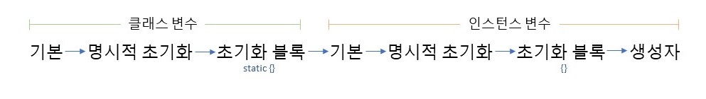 초기화는 변수를 선언하고, 처음으로 값을 저장하는 것을 의미한다. 변수는 멤버 변수(클래스 변수, 인스턴스 변수), 지역 변수가 있다. 멤버 변수는 따로 초기화를 하지 않아도 기본 자료형의 기본값으로 초기화가 된다.
