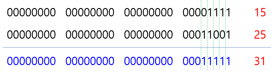 System.out.println(15 | 25); // --> 31