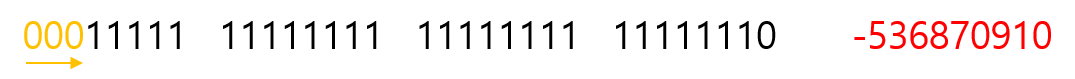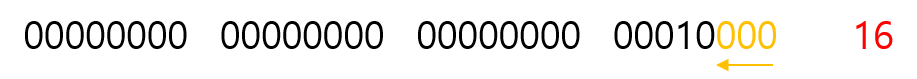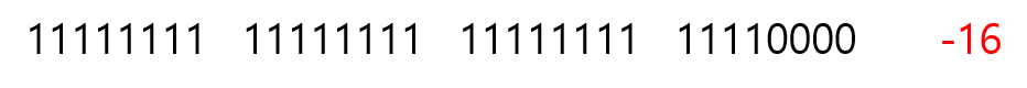 같은 피연산자이지만 위의 결과와 달리 빈자리가 최상위 비트부호가 아닌 0으로 채워진 것을 확인할 수 있다.