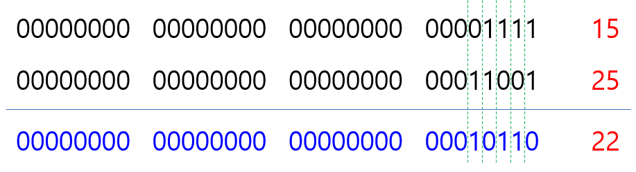 같은 위치의 두 비트가 1인 경우에만 1이 되어 연산하면 결과가 9인 것을 확인할 수 있다.