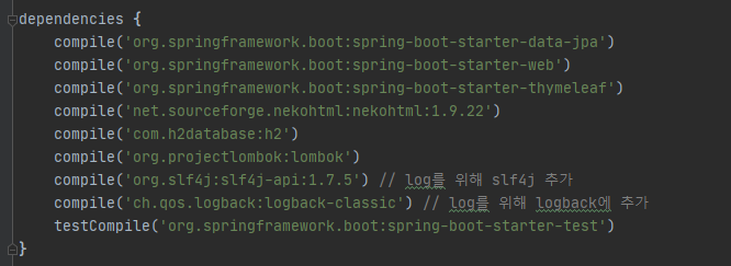 그리고 같은 의존성을 gradle의 build.gradle에 선언해보겠다.