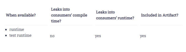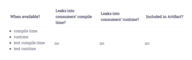 - 코드 작성 시, runtime classpath에 있어야하는 dependency를 실수로 사용하는 것을 막아줌